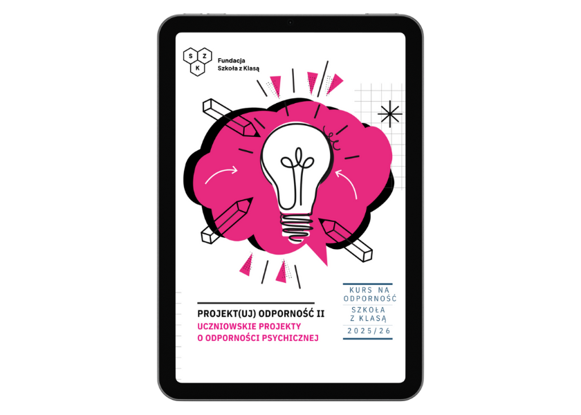„Projekt(uj) odporność II” to praktyczny przewodnik dla nauczycielek i nauczycieli, który krok po kroku pokazuje, jak poprowadzić z uczniami projekt dotyczący odporności psychicznej. Publikacja opisuje dwa kompletne scenariusze działań: grę terenową oraz patrol odporności, czyli badanie prowadzone przez uczniów w społeczności szkolnej. Autorzy podpowiadają, jak zorganizować pracę grupy – od integracji zespołu, przez planowanie, aż po realizację i podsumowanie działań. Materiał zawiera wskazówki dotyczące pracy zarówno z małymi, jak i większymi grupami, a także pomaga nauczycielowi zadbać o własne zasoby i dostosować projekt do realnych potrzeb szkoły. To narzędzie, które wspiera budowanie współpracy, uważności, wzajemnego wsparcia i kompetencji sprzyjających wzmacnianiu odporności psychicznej młodych osób.